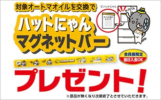対象オートマオイルを交換するとハットにゃんマグネットバープレゼント!