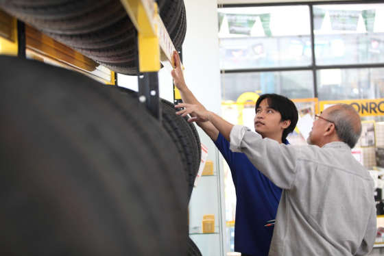 イエローハットでは、「プレミアムタイヤ満足保証」を実施しています。国内タイヤメーカー各社のプレミアムタイヤを対象にしており、新品タイヤを4本セットでご購入いただいたポイントカード会員様が、タイヤにご満足いただけなかった場合には、保証期間内であれば他のタイヤに交換していただけます。