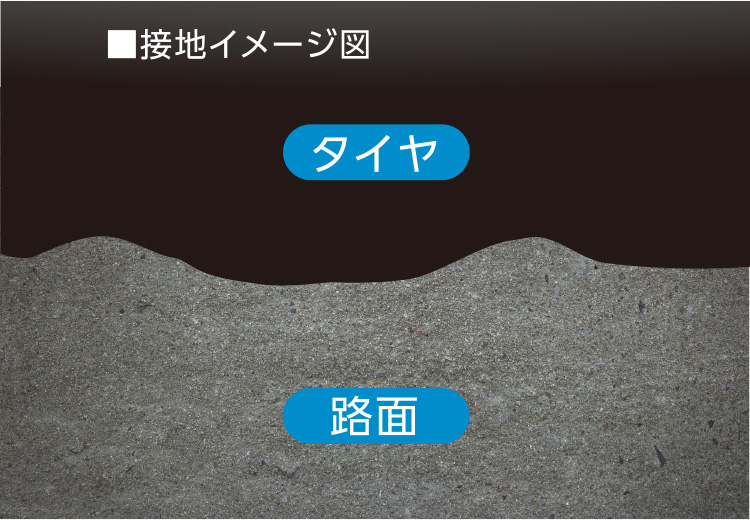 エコファイン用ゴムが細かな路面の凹凸にしなやかに密着。