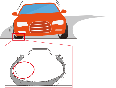 エコファインの場合、コーナリング時など荷重がタイヤの左右にかかる場合でも均一にたわみ、もともとの形状を維持する事で、優れた操縦安定性能を実現します。