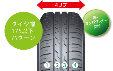 タイヤ幅毎にリブ数を最適化する事で、車種を問わず高いパフォーマンスを実現。