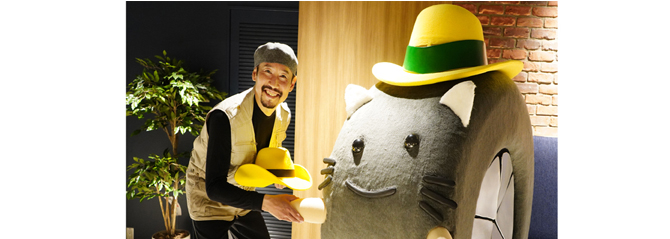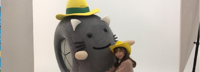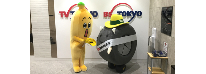 テレビ東京さんを訪問!!人気者で、思ったよりも高身長の「ナナナ」に黄色いテンガロンハットを渡しました♪