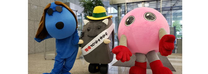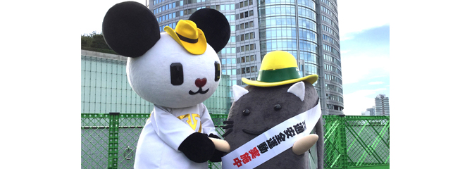 フジテレビのキャラクター「ラフちゃん」に交通安全運動の黄色いテンガロンハットを渡してきました。ばったりバボちゃんにも遭遇♪