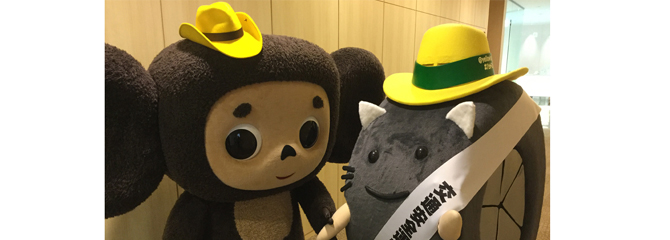 世界中で超人気のチェブラーシカに黄色いテンガロンハットを渡してきました。