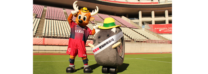 カシマスタジアムにお邪魔しました!しかお、中田CRO、アルシンドさんに黄色いテンガロンハットを渡してきました♪