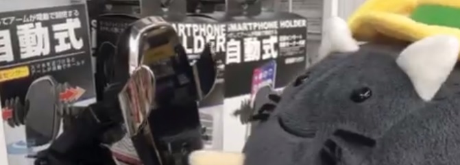 自動開閉アームのワイヤレス充電ホルダー、ハットにゃんも手を近づけると・・・