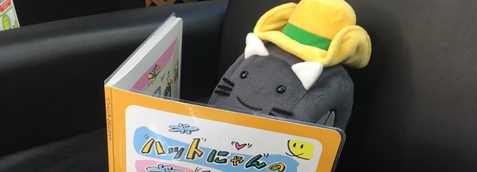 交通安全絵本「ハットにゃんのドライブ」を読むハットにゃん