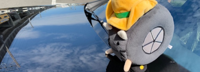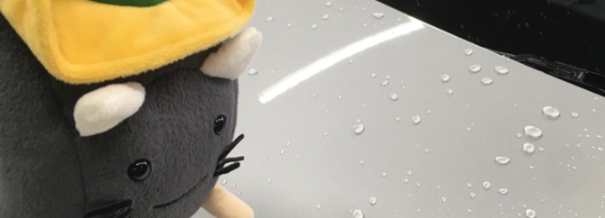 シャインズコートを施工したクルマを見て、水が転がっていることにハットにゃんもびっくり!