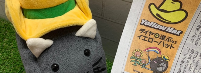 フリーペーパー『YellowHat Avenue』の表紙にハットにゃんが!全国の道の駅で配布中です。
