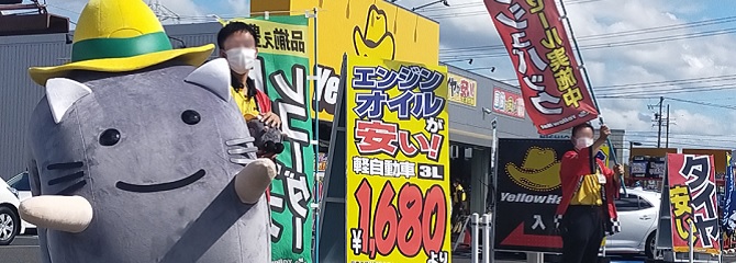 愛知県岡崎市の"イエローハット 岡崎緑丘店"にハットにゃんがやって来る♪