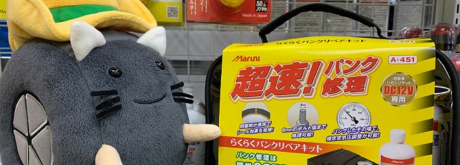 ドライブ中のタイヤのパンクに、ジャッキアップ不要で応急修理が可能!
