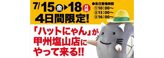 7/15(金)~7/18(月・祝)"イエローハット甲州塩山店"にハットにゃんがやってくる♪