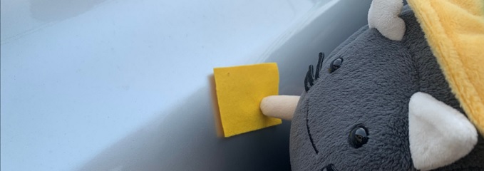 ハットにゃん新年に向けた大掃除。ピカピカの車で新年をお迎えください♪